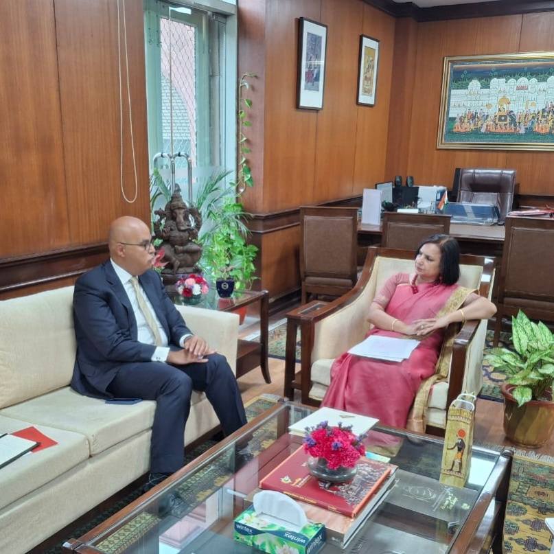 New Delhi – H.E. Kamel Galal, Ambassador of the Arab Republic of Egypt to India, met with H.E. Dr. Neena Malhotra, Secretary South of the Ministry of External Affairs of India (MEA).