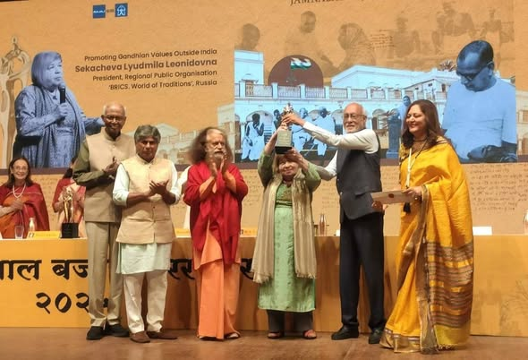 Mumbai, November 17 — Lyudmila Sekacheva, President of the Russian regional organization “BRICS. The World of Traditions” and Head of the international program “BRICS Peoples Choosing Life,” has been awarded the Jamnalal Bajaj Foundation’s International Award for “Promoting Gandhian Values Outside India.”