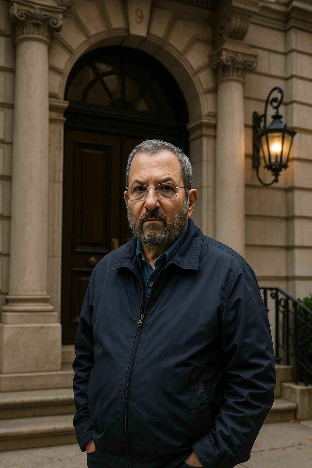 Ehud Barak, former PM of Israel, photographed at the entrance of Jeffrey Epstein’s Mansion, 9 East, 71st Street, Manhattan, New York