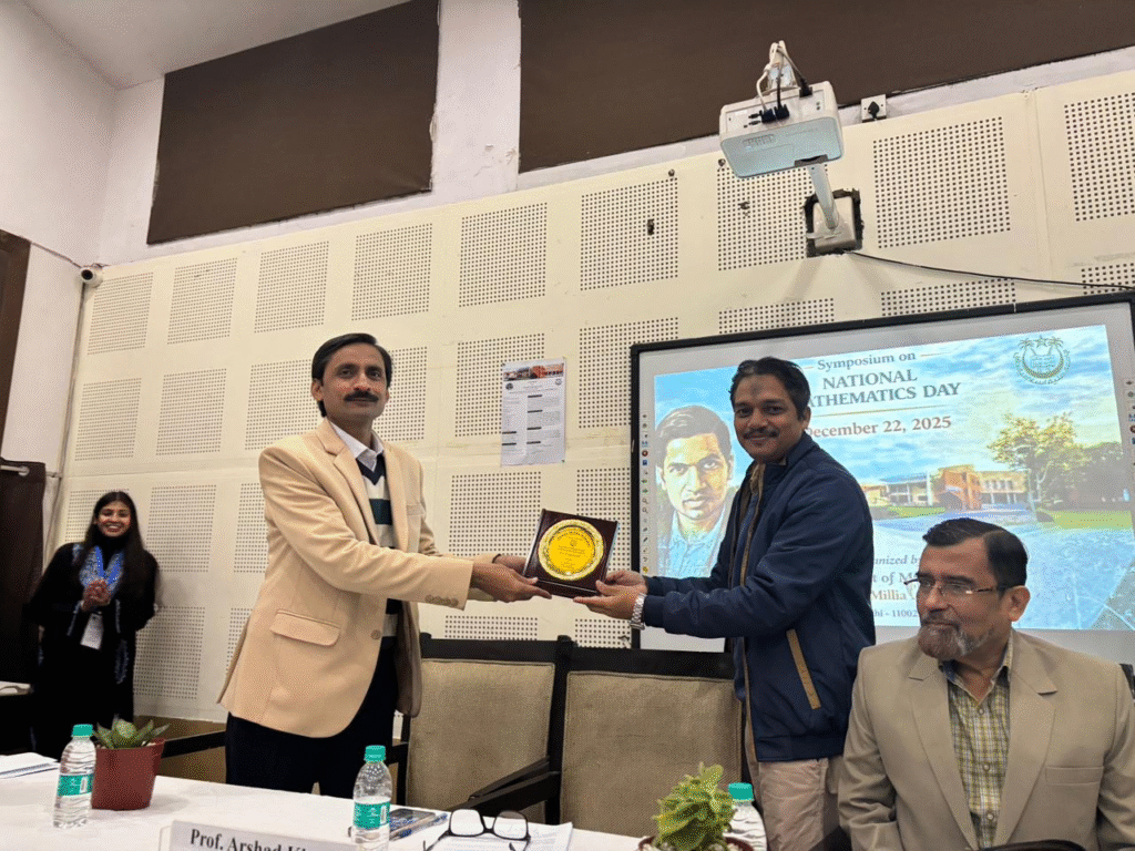 The Department of Mathematics, Jamia Millia Islamia (JMI), New Delhi, successfully organized a Symposium on National Mathematics Day on 22 December 2025 to commemorate the birth anniversary and celebrate the enduring legacy of the legendary Indian mathematician Srinivasa Ramanujan. The event aimed to promote mathematical awareness, inspire young scholars, and highlight contemporary developments in mathematical research.
