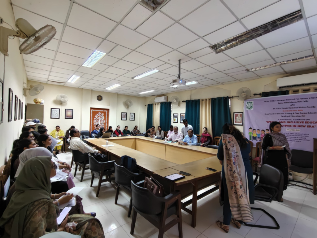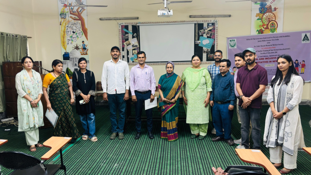 The Office of the Grievance Redressal for Persons with Disabilities, Jamia Millia Islamia (JMI) in collaboration with Dr. Zakir Husain Memorial Welfare Society and the Department of Teacher Training & Non-Formal Education (IASE), Faculty of Education,JMI jointly organized a National Seminar on “Special and Inclusive Education Initiatives in New Era” yesterday at the Conference Hall, Centre for Interdisciplinary Research in Basic Sciences of the university.