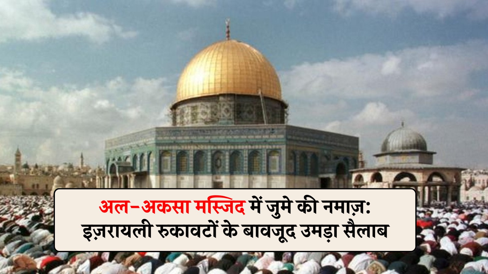 इस्लामिक वक़्फ़ प्रशासन के अनुसार, लगभग 40,000 मुस्लिम नमाज़ियों ने मस्जिद में जुमे का खुत्बा सुना और सामूहिक नमाज़ अदा की। नमाज़ के बाद ग़ाज़ा पट्टी और वेस्ट बैंक में शहीद हुए फ़िलिस्तीनीयों के लिए ग़ायबाना जनाज़े की नमाज़ भी पढ़ी गई, जिससे माहौल ग़म और सब्र से भर गया।