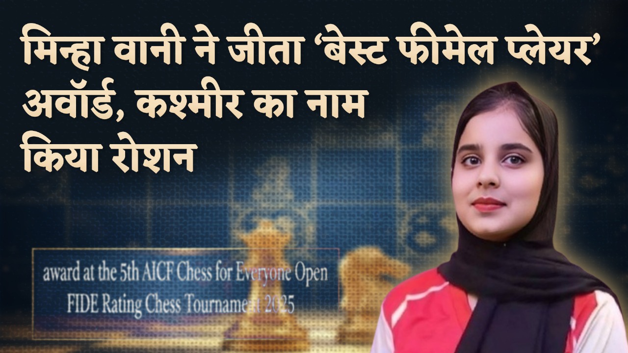 श्रीनगर: कश्मीर की प्रतिभाशाली युवा शतरंज खिलाड़ी मिन्हा आयज़ा वानी ने एक बार फिर अपनी मेहनत और लगन से राज्य का मान बढ़ाया है। उन्होंने 5वीं एआईसीएफ “चेस फॉर एवरीवन” ओपन फIDE रेटिंग टूर्नामेंट 2025 में ‘बेस्ट फीमेल प्लेयर’ का अवॉर्ड जीतकर शानदार उपलब्धि हासिल की। यह प्रतियोगिता इनडोर स्पोर्ट्स कॉम्प्लेक्स, पोलो ग्राउंड, श्रीनगर में आयोजित हुई, जिसमें देशभर के नामी खिलाड़ी शामिल हुए।