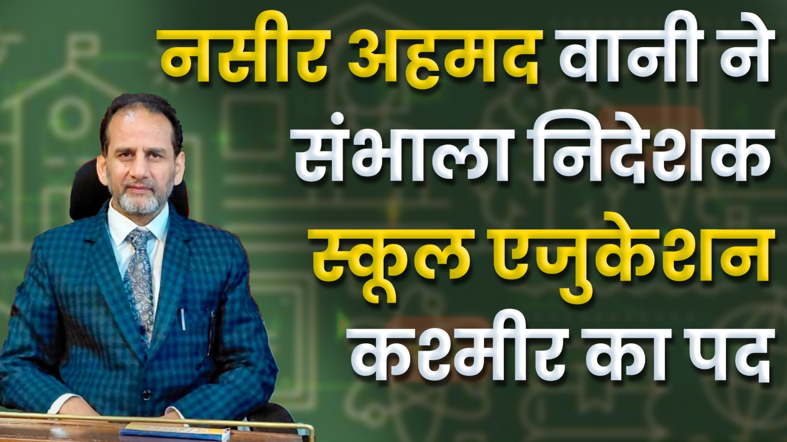 श्रीनगर — जम्मू-कश्मीर प्रशासनिक सेवा (JKAS) के अधिकारी नसीर अहमद वानी ने डायरेक्टर स्कूल एजुकेशन कश्मीर (DSEK) का कार्यभार संभाल लिया है। उन्होंने पूर्व निदेशक जी. एन. इट्टू की जगह ली है, जिन्हें हाल ही में विभाग के महानिदेशक (DG) के रूप में पदोन्नत किया गया है।