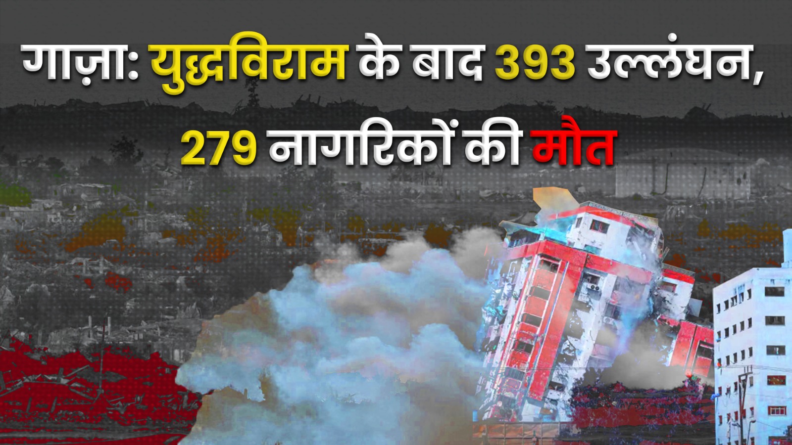 गाज़ा के सरकारी मीडिया ऑफिस ने बताया है कि युद्धविराम लागू होने के बाद से इज़रायली बलों द्वारा 393 उल्लंघन किए गए हैं। इन घटनाओं में अब तक 279 नागरिकों की मौत हो चुकी है, जिनमें बच्चे, महिलाएँ और बुज़ुर्ग शामिल हैं। इसके अलावा 652 लोग घायल हुए हैं। मीडिया ऑफिस का कहना है कि यह उल्लंघन गंभीर है और लगातार बढ़ते जा रहे हैं, जिससे युद्धविराम की मूल भावना प्रभावित हो रही है।