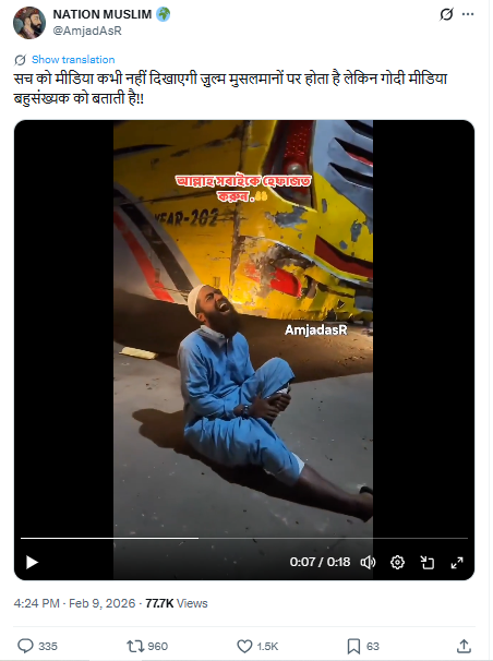 एक यूजर ने वीडियो शेयर करते हुए लिखा, ‘सच को मीडिया कभी नहीं दिखाएगी ज़ुल्म मुसलमानों पर होता है लेकिन गोदी मीडिया बहुसंख्यक को बताती है!!’