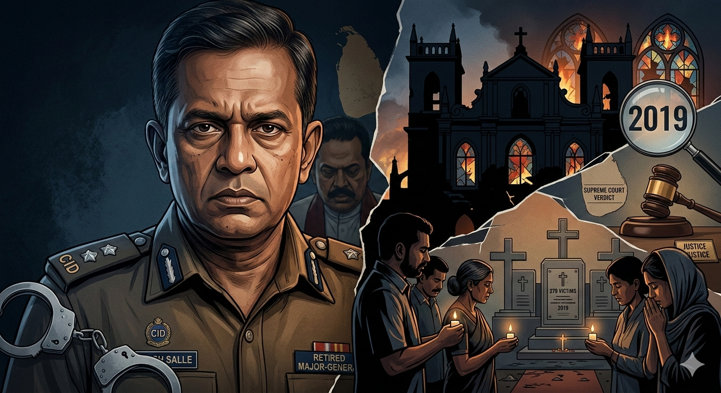 श्रीलंका में 2019 के ईस्टर संडे बम धमाकों के मामले में एक अहम और चौंकाने वाली कार्रवाई हुई है। आपराधिक जांच विभाग ने पूर्व स्टेट इंटेलिजेंस सर्विस यानी (SIS) प्रमुख, रिटायर्ड मेजर-जनरल सुरेश सल्ले को गिरफ़्तार कर लिया है।