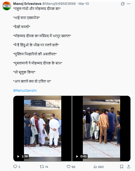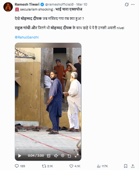इसी बीच सोशल मीडिया पर एक वीडियो तेजी से वायरल होने लगा। वीडियो को शेयर करते हुए दावा किया जा रहा है कि जब मोहम्मद दीपक इफ्तार के लिए एक मस्जिद पहुंचे तो वहां मौजूद लोगों ने उन्हें यह कहकर अंदर आने से रोक दिया कि मस्जिद में गैर-मुस्लिमों का प्रवेश नहीं है, और उन्हें वहां से भगा दिया गया।