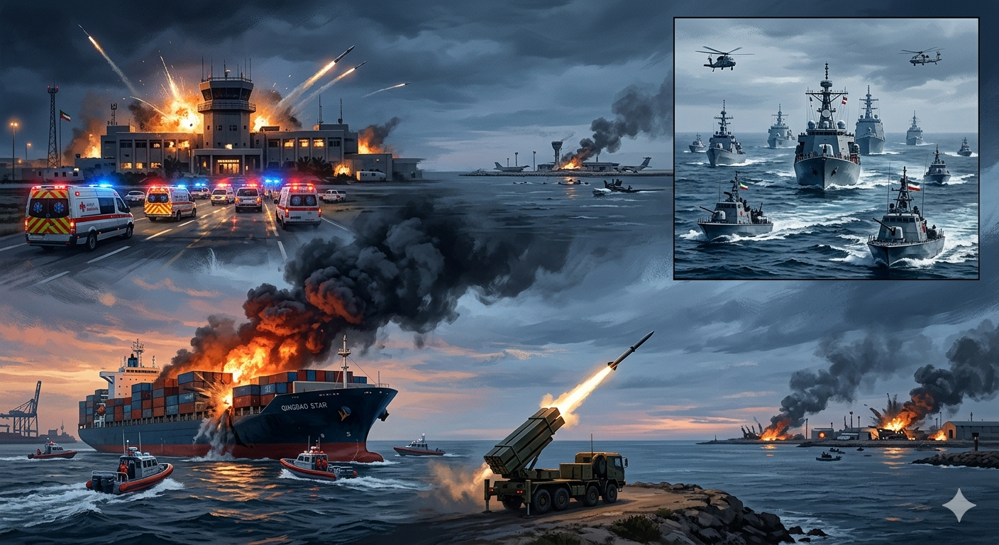 इसके अलावा, संयुक्त अरब अमीरात के जेबेल अली पोर्ट में “QINGDAO STAR” नाम के एक जहाज़ को मिसाइल से निशाना बनाया गया, जिससे उसमें आग लग गई। IRGC का कहना है कि यह जहाज़ इज़राइल से जुड़ा हुआ था।