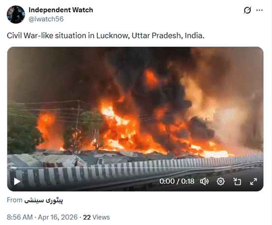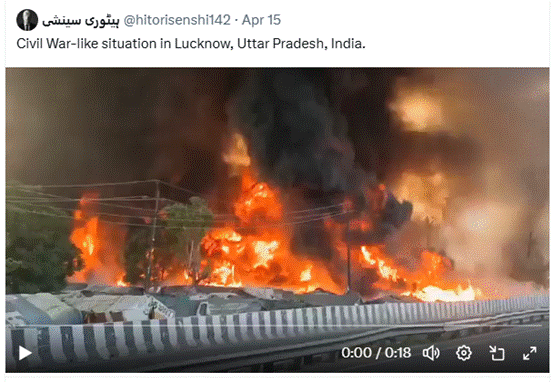 Times Headline की जांच में साफ हुआ कि वायरल वीडियो के साथ किया जा रहा “गृह-युद्ध” का दावा पूरी तरह भ्रामक है। यह वीडियो लखनऊ के विकासनगर इलाके में लगी भीषण आग का है, जिसमें गैस सिलेंडर फटने के कारण आग तेजी से फैल गई थी।