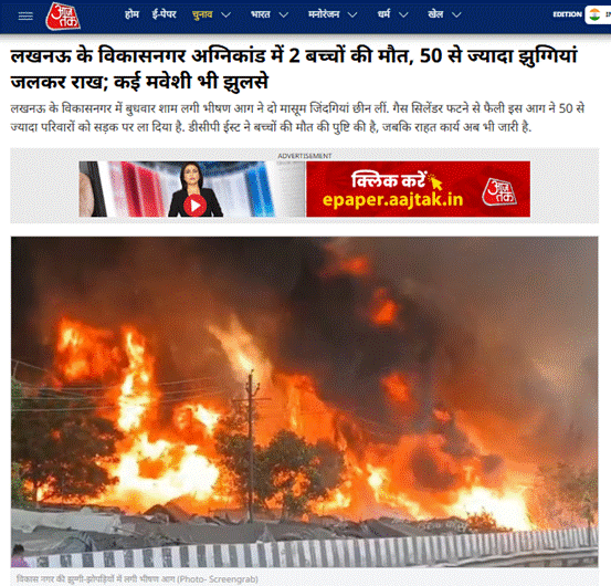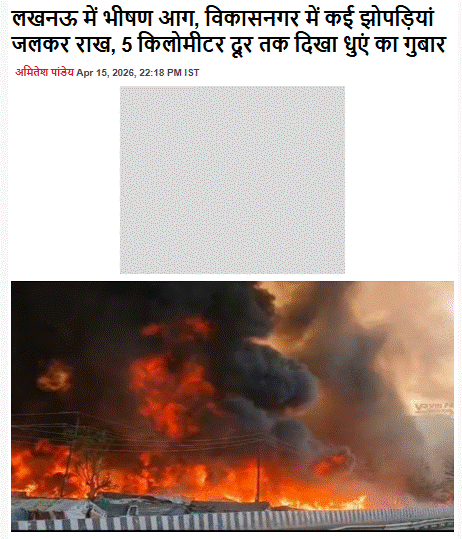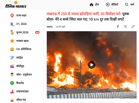 वायरल दावे की सच्चाई जानने के लिए Times Headline ने वीडियो के कीफ्रेम निकालकर रिवर्स इमेज सर्च किया। जांच के दौरान यही वीडियो दैनिक भास्कर की एक रिपोर्ट में मिला। रिपोर्ट के अनुसार, यह घटना लखनऊ के विकासनगर इलाके की है, जहां बुधवार शाम करीब 5:30 बजे भीषण आग लग गई थी।