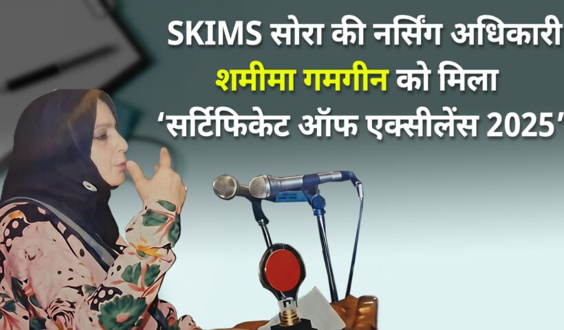 श्रीनगर: शेर-ए-कश्मीर इंस्टीट्यूट ऑफ मेडिकल साइंसेज यानी (SKIMS) सोरा में कार्यरत नर्सिंग अधिकारी शमीमा गमगीन को उनके उत्कृष्ट कार्य के लिए सर्टिफिकेट ऑफ एक्सीलेंस 2025…